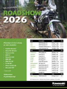 Det er vår, snøen er borte, og da er det tid for Kawasaki Roadshow. Over ser du når de er på dine kanter. Benytt sjansen