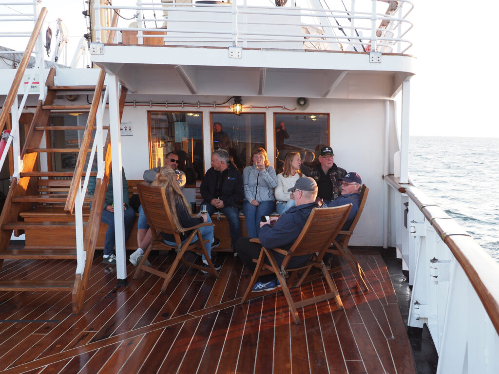 Båten har egen bar med alle rettigheter, og masse dekksplass for de som liker å sitte ute.”