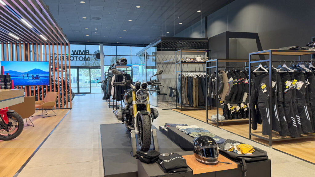 Vi har skrevet om både MCO Vollebekk og MC-Huset Nydal som i år har fått ny BMW-designstore etter å ha bygget nye butikker. Lørdag 20. september var det avduking av den nye butikkinnredningen på Forus. Her finner du selvsagt en knitrende lyspeis med overliggene sort/rødbrunt ”bjelketak”. Det er smakfullt innredet og det er ikke spart på noe. Vi likte at veggen mellom BMW Motorrad og Mini-avdelingen var borte, for nå fremstår MC-butikken mye større og lysere.