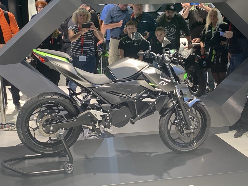 Kawasaki benyttet anledning til å vise frem en prototype på på en el-sykkel. Det finnes ingen tekniske data, men sykkelens kompakte format antyder at det kan dreie seg om en lettvekter på 11 kW. Kawasaki har lovet 3 nye el-modeller i løpet av høsten. I tillegg har de vist frem en større hybridsykkel tidligere.