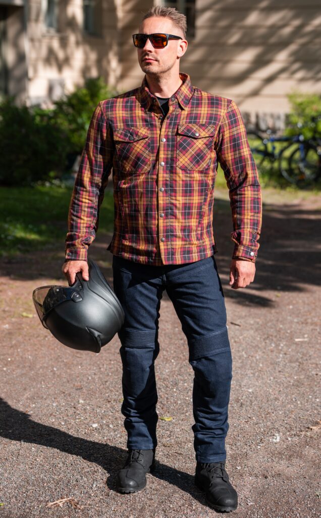 For førere som søker en tidløs stil, tilbyr Kullberg kjøreskjorten det ikoniske utseendet til en tømmerhoggerflanell med beskyttelsen som kreves for motorsykkelturer. Laget av bomullsflanell og forsterket med aramid, gir den holdbarhet samtidig som den opprettholder en lett og komfortabel følelse – perfekt for sommerturer. I likhet med Oselbo er Kullberg CE-klasse AA-sertifisert og inkluderer CE-nivå 2-beskyttere på skuldre og albuer. Den støtter også ekstra ryggbeskyttelse med MELBYN (nivå 2) eller OKELBO (nivå 1) innlegg.